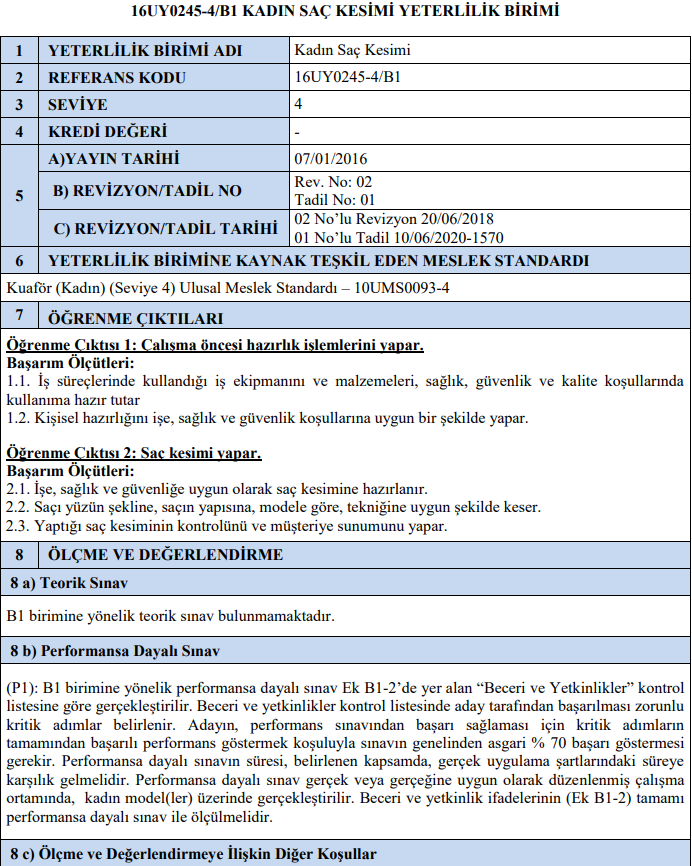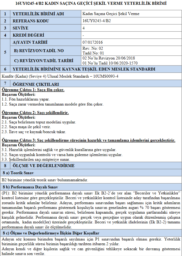 Bu yeterlilikteki kritik adımları görmek için tıklayınız.(KADIN)